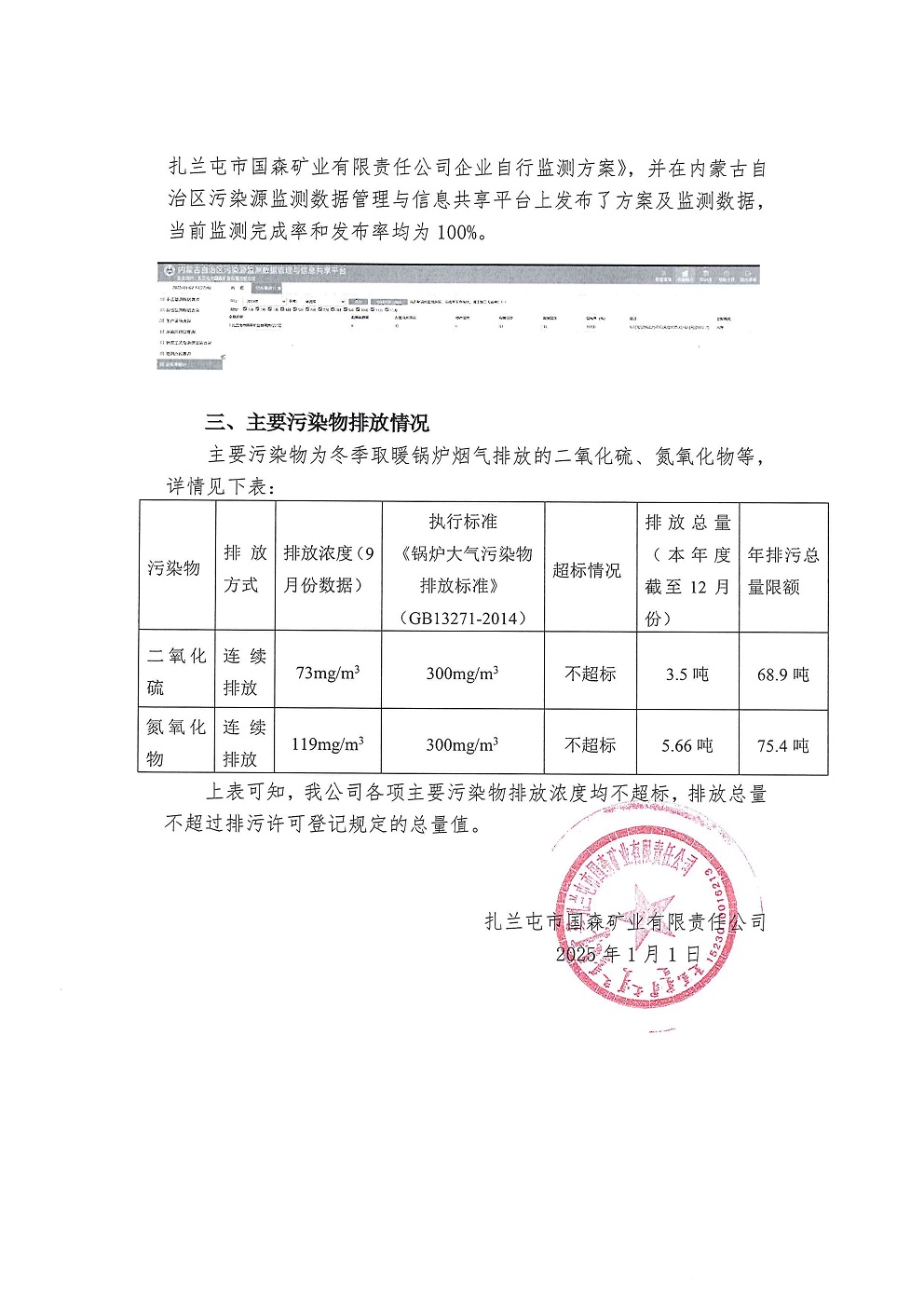 扎蘭屯市國森礦業有限責任公司重點排污單位環境信息公示